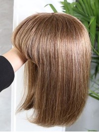 R: La plupart des perruques sont fabriquées avec un bonnet de perruque standard, qui n'est généralement pas visible à travers les cheveux. Le bonnet a une couche de dentelle fermée autour de la couronne, sur laquelle les cheveux sont cousus à la machine. Les cheveux sont généralement coiffés de manière à ce que la couronne soit soulevée afin que le capuchon ne soit pas visible. Ce bonnet donne aux cheveux un lifting et un volume naturels au niveau de la couronne.