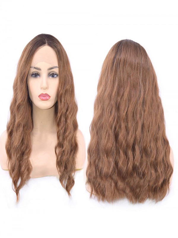 marron Longue Ondulée Dentelle Devant Perruques